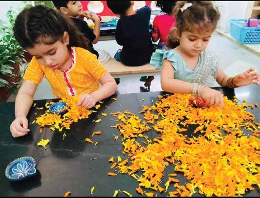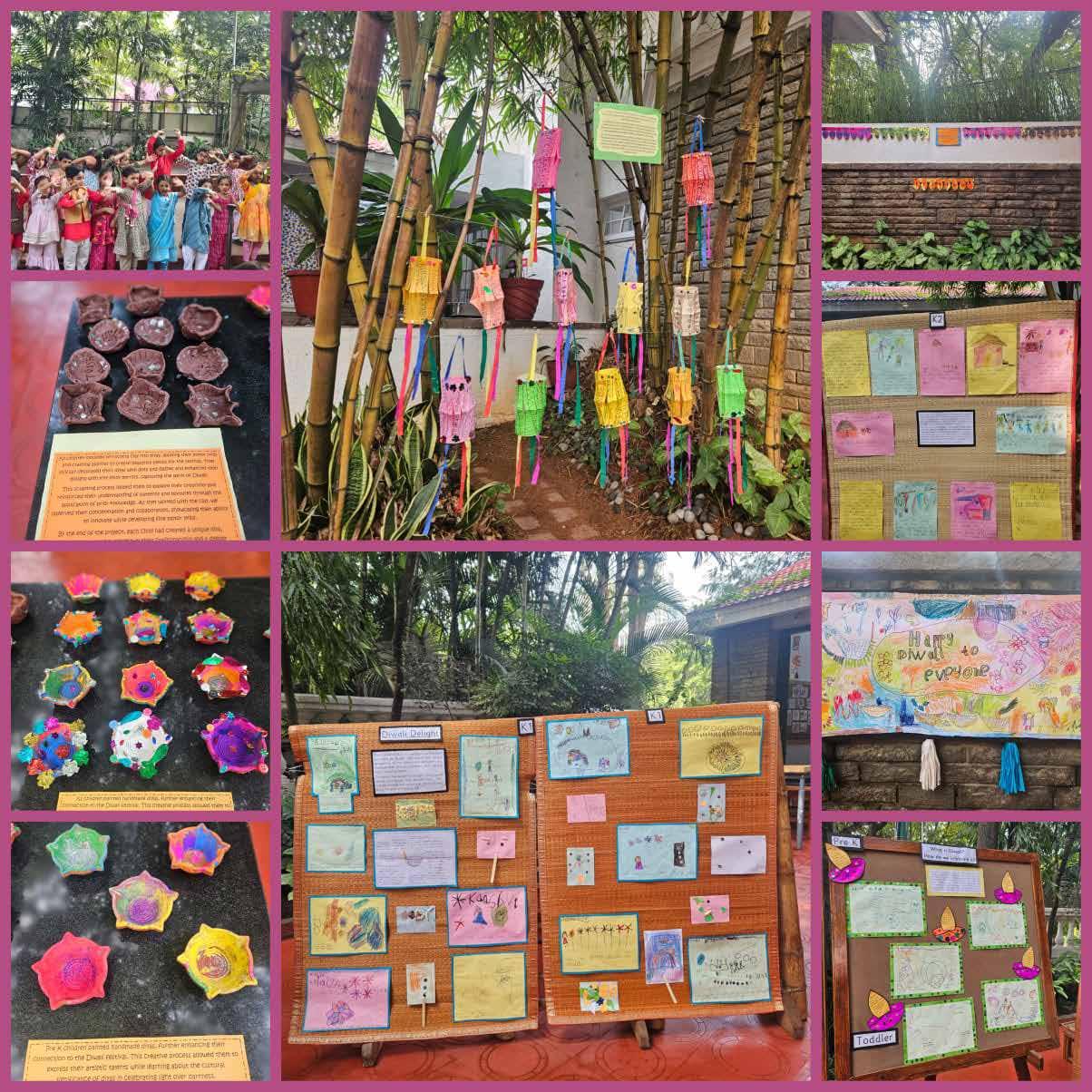 Diwali festivities marked vibrant performances, songs, and reflections on our responsibilities through stories and art. Students immersed themselves in decorating diyas, torans, and rangolis, celebrating the joy and significance of this special festival of lights.