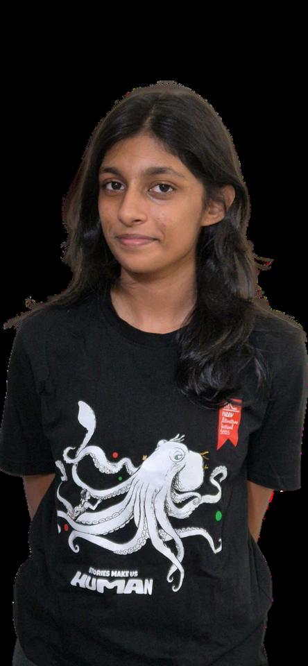 The NLF student chair and co-chair Nikhita Chatterjee (11A) and Saanvi Singh (11B) hosted a series of student competitions for the festival, namely the 6 Word Story, Book Trailer, Alternate Book Cover, Shape Poem, and the creation of a Comic Strip, based on the books that were a part of the Neev Book Award (NBA) shortlist this year They also created a “Sorting Hat of Masterclasses” to help visitors navigate which masterclasses to attend at the festival, based on their interests and age groups Our NBA Student Chair and Co-Chair Alisha Patil (11B) and Anaaya Kanchan (10C) initiated the NBA Student Choice Award by creating reading groups of students across the different grades at the school, and having the members of these groups vote on the books that they thought were most fitting for the award, based on the criteria that had been created for the same Sayuri Manon (11B), the Head of Student Volunteers, spearheaded a programme to bring in Reading Community Volunteers interested students who are readers from other schools and keen to volunteer at a children’s literature festival to witness the work that goes on behind-thescenes and explore it firsthand Shenaya Bhattacharjee (11B), Head of the Multimedia Team, created enthusiasm among the student community for the festival, both online and offline, by featuring our students in a variety of reels in the run-up to the event Dhruv Nagri (10A), the Design Chair, led a team of design and decor volunteers to source and decorate CDs from the student body to form a backdrop for the photo booth, create an octopus installation at the entrance, as well as introduce an origami bookmarks stall managed by Manasvi Dadbhawala (11B) and Krishna Samant (10A), alongside building on the NLF passport from last year, which ended up being a leading attraction, especially for young children The Visual Arts team across Academy and Early Years led by Mr Pradeep, Mr Harish, and Ms Benazeer, worked closely with the students of the design and decor teams to add colour and flavour to the glass walkway, the pillars, and created an interactive art project for visitors to contribute to