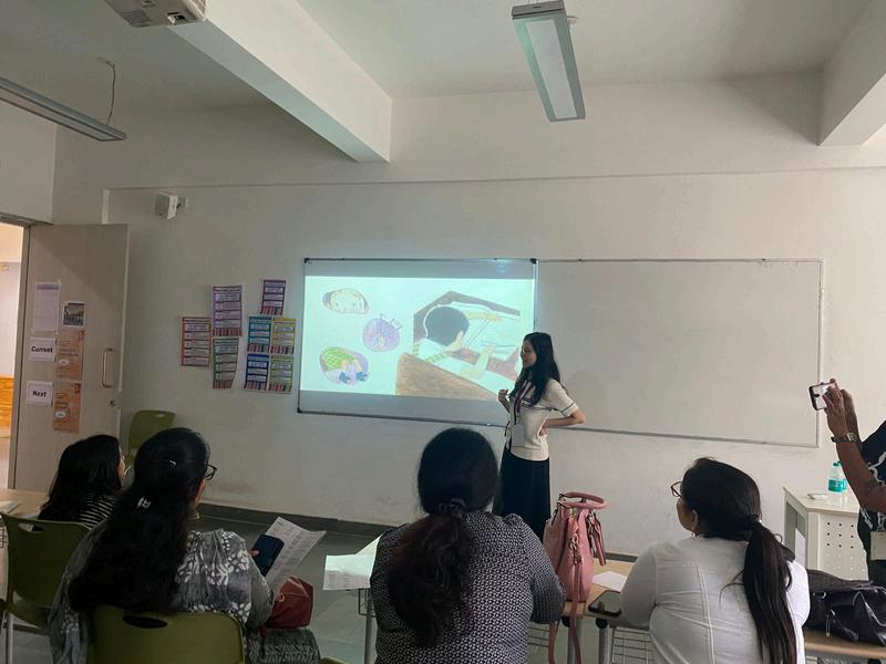 In the session “Feeling Shy Feeling Brave”, Rishitha Loitongbam engaged with audiences ranging from 6-year-old students to fellow 60-year-old authors and teachers In her own language of visual metaphors and exaggerated imagery, Ms Rishitha explained how pictures and colors can be used to depict one ’ s sentiments The book Thoithoi Feels Shy is a prime example of this type of communication, in which she masterfully conveys the sense of shyness without any words or dialogue Rishitha’s demeanor mirrored Thoithoi’s in the way that she evolved over the course of the session, opening up more to the audience of children and adults present.