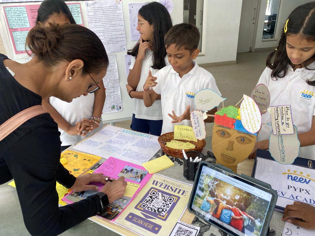 The Grade 5 Exhibition - Students in their final year of the PYP (Grade 5), participate in a culminating project, called the ‘PYP Exhibition’. It is not only a celebration but it is also a final assessment where each student is required to demonstrate engagement with all the essential elements of the programme: knowledge, concepts, skills, dispositions and action. Students engage in a transdisciplinary inquiry that involves them in identifying, investigating and offering solutions to real-life issues or problems. The students and teachers from other schools, Grade 5 Parents and the Neev community members are invited to attend the Grade 5 Exhibition.