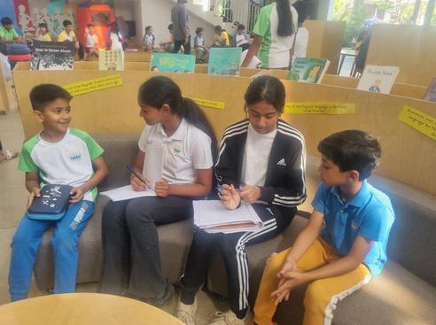 This year, a new stayback activity was introduced the Neev Book Club, spanning across Grades 6–8. The essential aim is to explore books across diverse themes and genres that students might not typically encounter in their daily reading It has become a comforting space where students gather weekly to read, discuss themes, and track their progress through creative activities. These activities encourage skills such as storytelling, collaboration, journaling, and critical thinking.