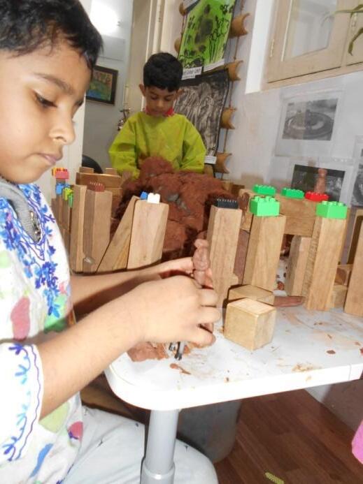 Afteran initialdiscussion of whowantsto build in whicharea, few childrendecided to make it on thetable(clay centre) in art class.