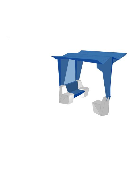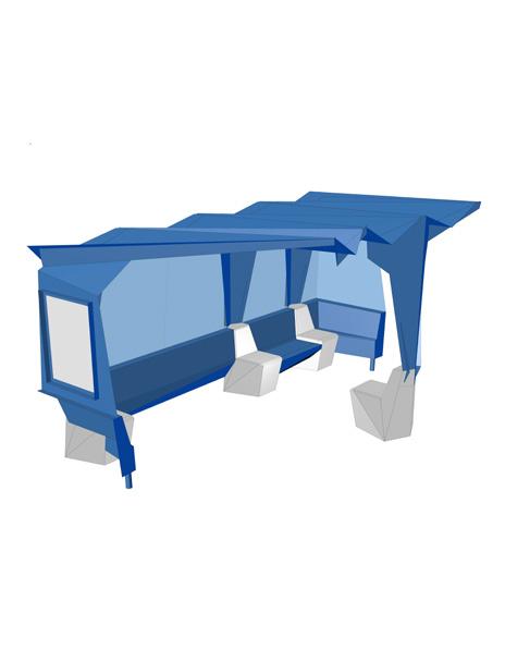 This folded plate prototype creates a modular system adaptable to various Columbus, Indiana sites, unifying transit shelters with a consistent, flexible design language.