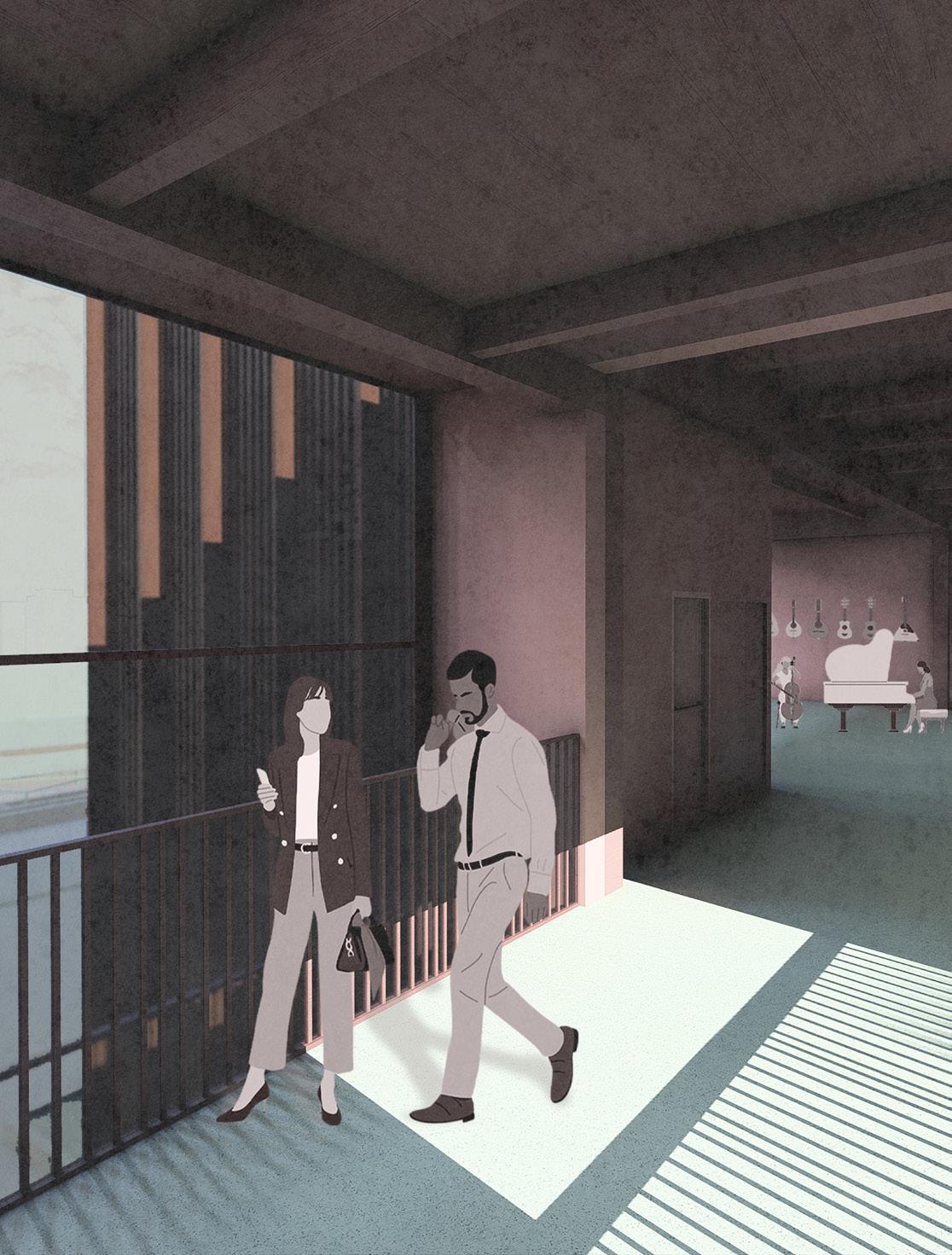 1. Lobby 2. Cafe’ 3. Music Playground 4. Library 5. Control room 6. Live Recording Room