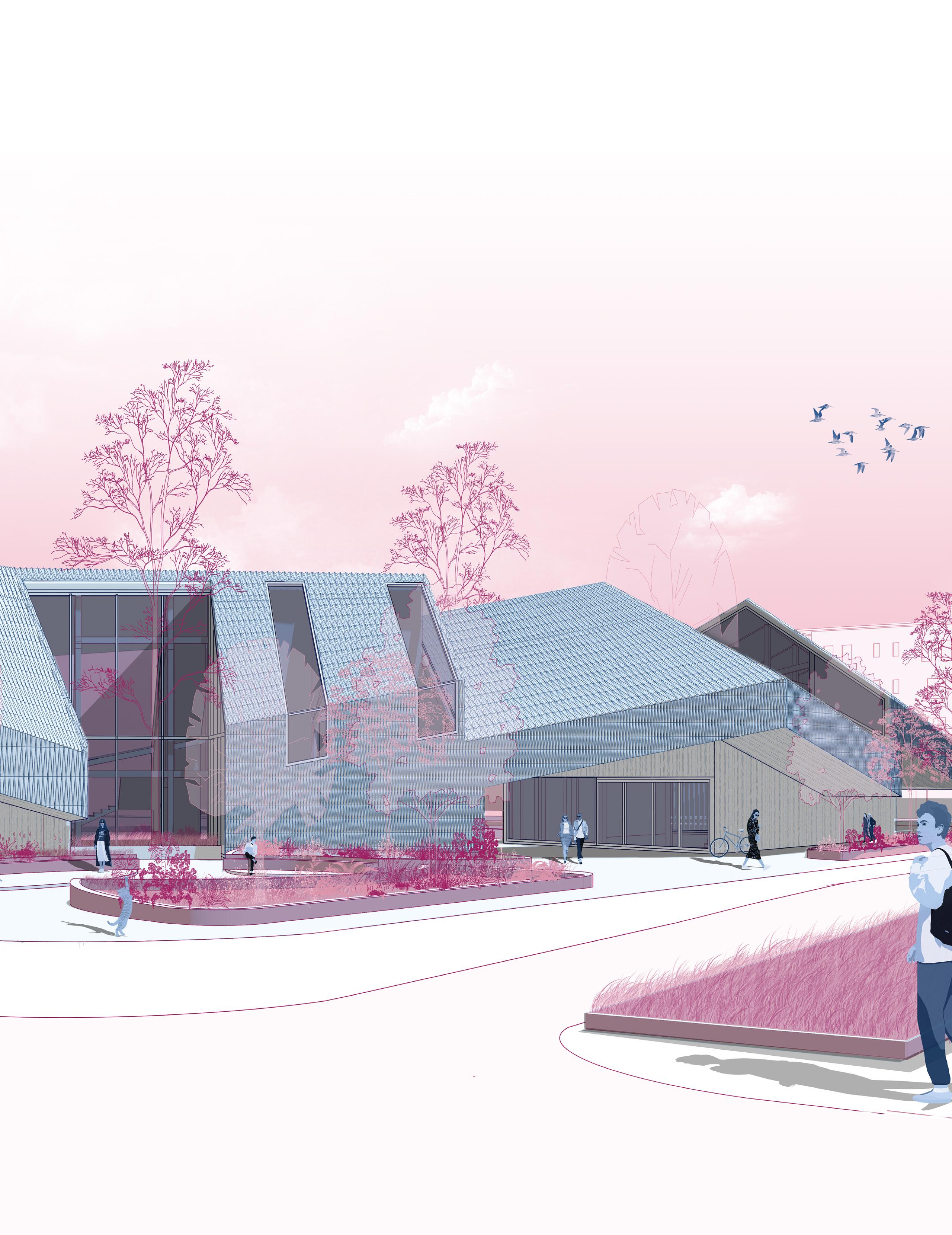 Constructed primarily from heavy timber, the structure emphasizes material honesty and warmth, while landscaping efforts focus on utilizing local plant species to strengthen the connection between architecture and nature. Overall, the project seeks to harmonize community, music, and environment, creating a dynamic yet sensitive addition to the park.