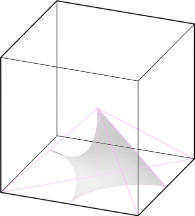 First, a mesh plate with the logic of batwing minimal surface was modeled in the form of a sharp corner. Then, supportive lines and effective points were extracted from the initial mesh, and after that by the kangaroo plug-in and the extracted data, the tensile shell was created. In the end, the surface was manipulated to conform to the fabrication.