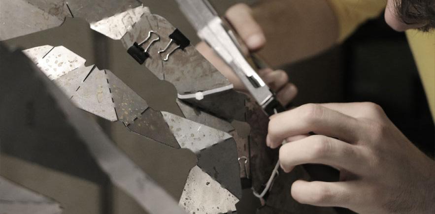 The project centers on the design and fabrication of a Batwing Minimal Surface, a triply periodic minimal surface discovered by Alan Chosen, known for its elegant geometry and zero mean curvature. The surface was mathematically defined and trigonometric approximations were used to generate its complex threedimensional form. After extracting the two-dimensional components from the digital shell, metal was selected as the primary material for its strength, precision, and suitability for laser cutting. The fabrication process began with detailed 2D plans prepared for metal laser cutting, followed by the application of a Bridge-Building technique at the joint points, developed in collaboration with a mechanical engineer to ensure structural stability. The components were then assembled through argon welding, resulting in a construction of striking accuracy. This precision was especially impressive considering it was the team’s first experiment with metal fabrication and laser-cutting technology, producing a refined and technically sophisticated architectural prototype.