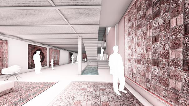 Description: Moghaddam carpet store is located in the historical part of Isfahan and is close to the Naghshe-E-Jahan square. Moghaddam carpet is one of the oldest carpet stores, and its customers vary from local people to tourists. The store building is an old three-story house which the owner decided to renovate and use as a store. The urban façade of the street leading to the Naghshe-e-Jahan Square had been unified, so the north façade is unchangeable. The approach to renovating this shop was to make it a Gallery and shop for carpet lovers.