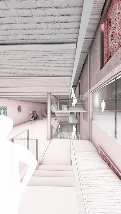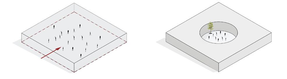 The process of giving new functions to the factory was a challenge. The Avenue has heavy traffic in the mornings because of the different offices, also in the evening, many people come for the shopping centers. The new building should be accessible for people who are walking and wandering around. A metro station is precisely on the other side of the street and makes the complex accessible. Considering the historical gardens of Chaharbagh and the concept of recreation, I decided to combine the industrial background of the site with the joyful moments of the gardens. The project must be easy for people to wander around even if they do not want to do anything specific, and secure the streets, especially at night. Therefore, the new usage is the Cineplex and performing arts. The main active hours of this project are in the afternoon when the offices are closed, and the street begins its nightlife. The complex can be open until midnight and helps to secure the area. 06