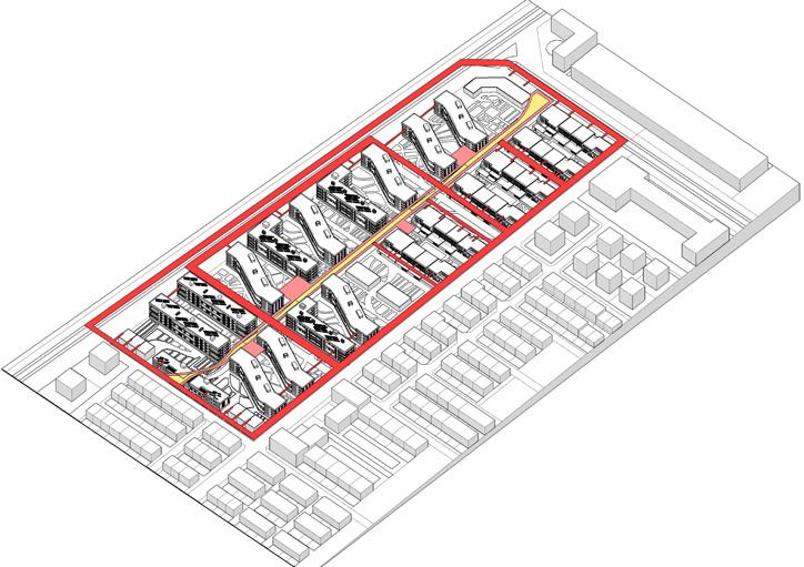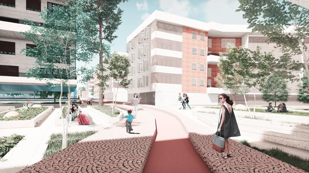 The project›s objective is to provide housing for people with low environmental impact while including green spaces for socializing within the neighborhood. In addition, the conflict between cars and people decreased to secure the area for bikes and pedestrians.