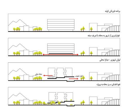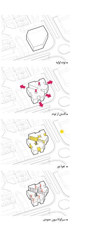 This project aims to create a complex with different functions appropriate to the conditions and needs of its audience, which will improve social relationships. In-between spaces define a threshold so that even people who do not want to enter the building can use the public space. Creating a flexible space requires combining open and closed spaces and connection with the city and routes appropriately. Also, such areas should have the capability of organizing various activities. Mixed-use development brings diversity, flexibility, sustainability. The project is located in new parts of the city, built about 50 years ago. Some dwellers are from small towns near Mashhad that migrate to Mashhad for work or other reasons. Therefore, it is essential to build a place that connects the people who are newcomers with the local people.