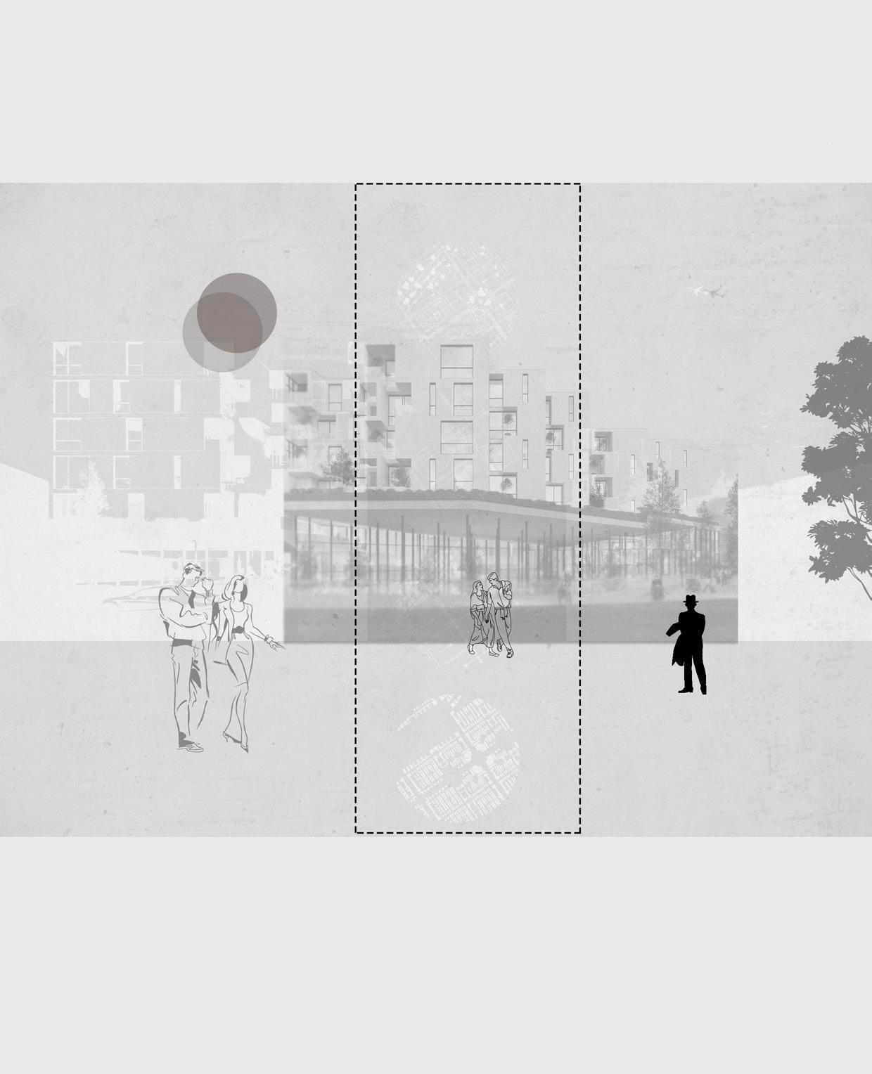 It has to work with both the city and the houses inside. So, it could act as a third place which connects the urban life with the life of people living inside the houses.
