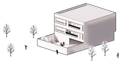 Reduce the volume to create the pedestrain entrance in the direction of linear park