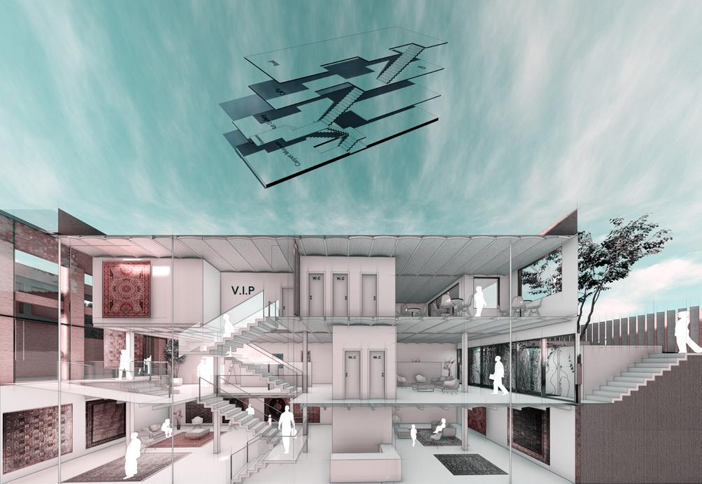 Description: Human beings in the modern age need a space to accept their social role and position. The current lifestyle and activities have caused so many people to spend a lot of time at work, school, and university; homemakers also spend most of their time at home. In the past, markets, squares, and coffee houses were regarded as places where people could be together, meet others, and exchange information, but now people need a space to have fun and socialize with groups with similar interests in their free time. Through these social interactions, the culture and identity of a society are defined. The era we are living in includes intertextual and in-between concepts as a number of its features. The manifestation of these features is also significant in the field of architecture.