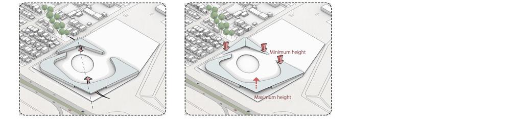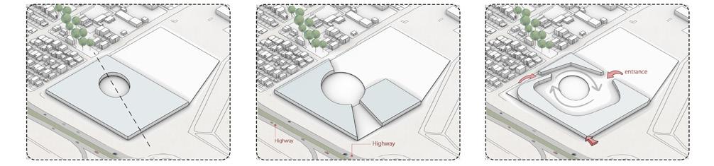 . Different density and heights in different parts of the site ( How the center connects to residential blocks, highway, and main streets)