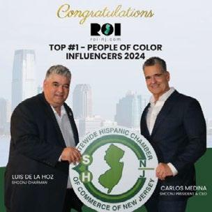 The Statewide Hispanic Chamber of Commerce of New Jersey congratulates Carlos Medina, Luis De La Hoz, the Board of Directors, and leadership staff on this welldeserved recognition. Their persistent efforts in advancing diversity, equity, and inclusion in the business landscape have elevated the profile of Hispanic entrepreneurs and enriched New Jersey's economy.
