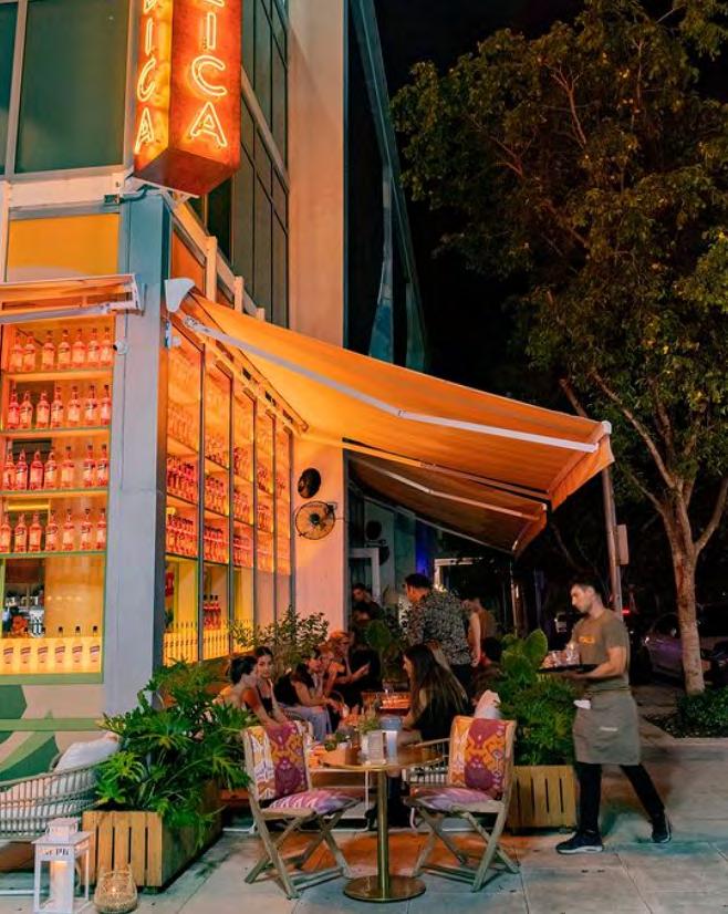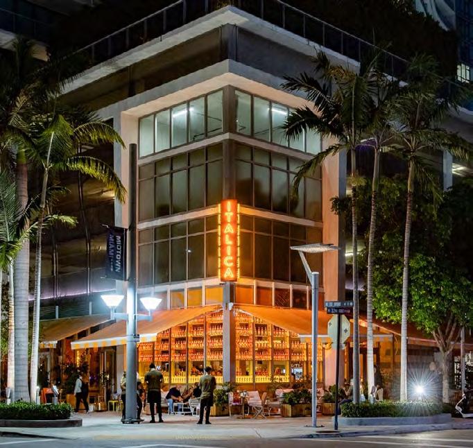 Itálica Midtown atrae a los clientes con su vibrante exterior que cuenta con un patio apto para mascotas con capacidad para 40 personas.