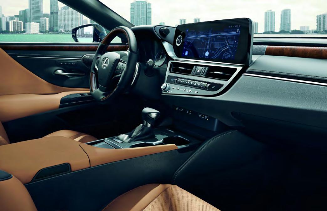 Los propietarios del Lexus ES disponen de amplias opciones de colores interiores que reflejan una artesanía refinada y lujosa. Los modelos ES de base incluyen de serie las opciones de tapicería NuLuxe en los interiores Palomino, Acorn y Negro con láminas en negro estriado. Añadiendo el paquete Premium, las opciones interiores del modelo base ES incluyen el acabado Macadamia NuLuxe emparejado con una selección entre Ash Bamboo, OpenPore Brown Walnut y Open-Pore Black. Los modelos Luxury y Ultra Luxury ofrecen opciones de tapicería de cuero semianilina en Palomino, Macadamia, Acorn y Negro con opción de acabados OpenPore Black, Open-Pore Brown Walnut y Ash Bamboo.
