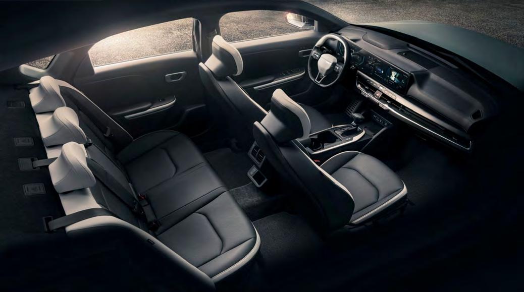 Según la versión, la tapicería varía desde tela bicolor en el modelo S, combinaciones de CloudTex y tela en el SE y SE Black, hasta cuero en el SEL, con opciones en negro, gris o un elegante azul oscuro. Los modelos superiores incorporan iluminación ambiental LED de 10 colores, asientos delanteros ventilados y climatizador automático de doble zona.