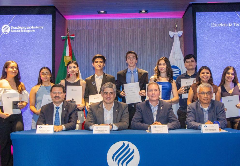 La ceremonia Excelencia Tec reconoció a los estudiantes con los mejores promedios del semestre Febrero–Junio 2025, así como a los profesores mejor evaluados en la encuesta de opinión. El evento reafirmó el compromiso de la Escuela de Negocios con la excelencia académica.