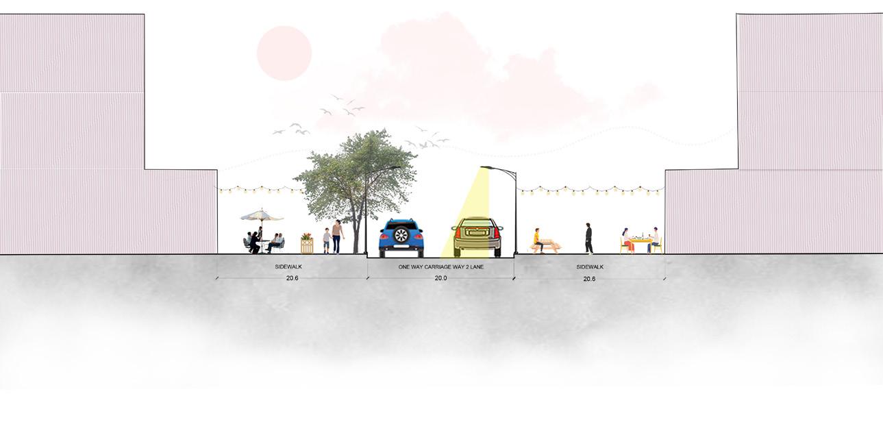 The first improvements we would utilize to instigate change within the plaza would be the introduction of more frequent, and in select locations, larger green spaces. Green spaces help attend to a multitude of issues within an urban environment, one of which is the slowing down of vehicular traffic. Studies have proven lowering the peripheral field of view of vehicles along a roadway causes them to slowen their pace, placing green medians within the vehicular right of way and planters along the edges causes this positive reaction. With a generalized lowered speed we would see an uptick in pedestrian safety throughout the plaza.