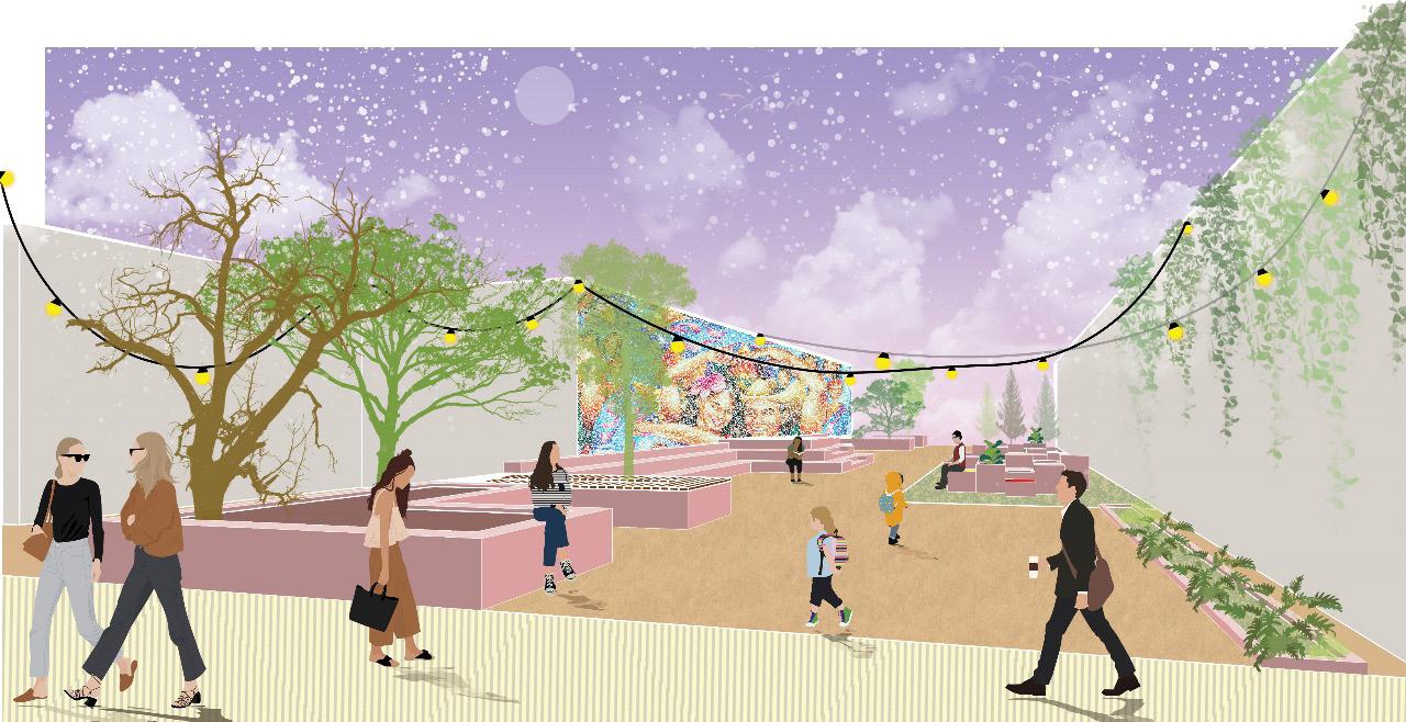 • Ambitious Increased verticality of the existing Plaza superstructure will incubate new businesses; a split of the structure culminates human-scale mobility from end to end.