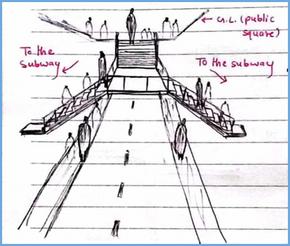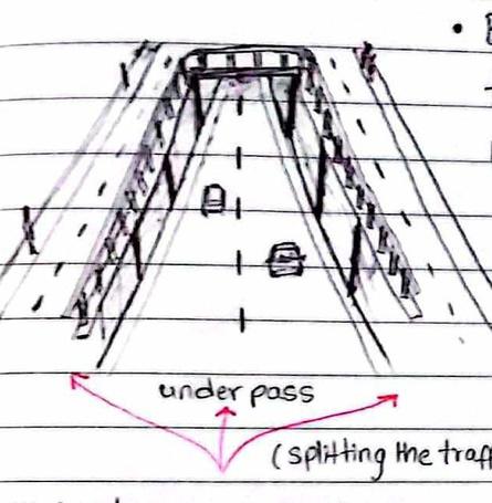 Spliting the traffic into the surface level and an underpass has varying advantages Tampo parking has been facilatated at the ground level rather than the NW underpass considering its local types