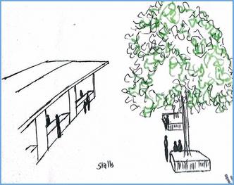 Existing stalls and small scale business setups positioned adjacent to local tampoo
