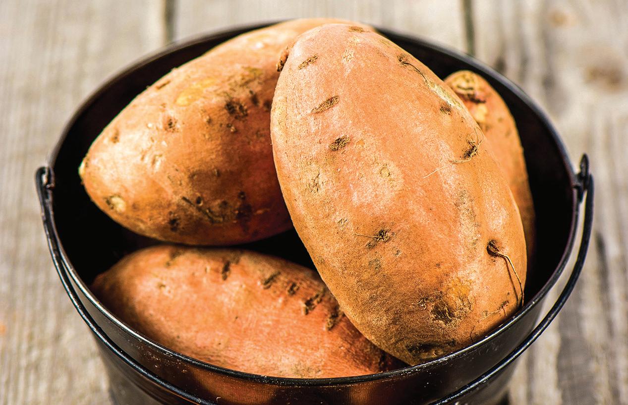 2. Spritz an 8” x 8” baking dish with cooking spray. Place potatoes, a handful at a time, in the dish and spread them so that the orange and white slices are evenly distributed. Sprinkle 10 to 12 mini-marshmallows on top of this layer. Repeat process, creating five layers, until you almost reach the top of the baking dish.