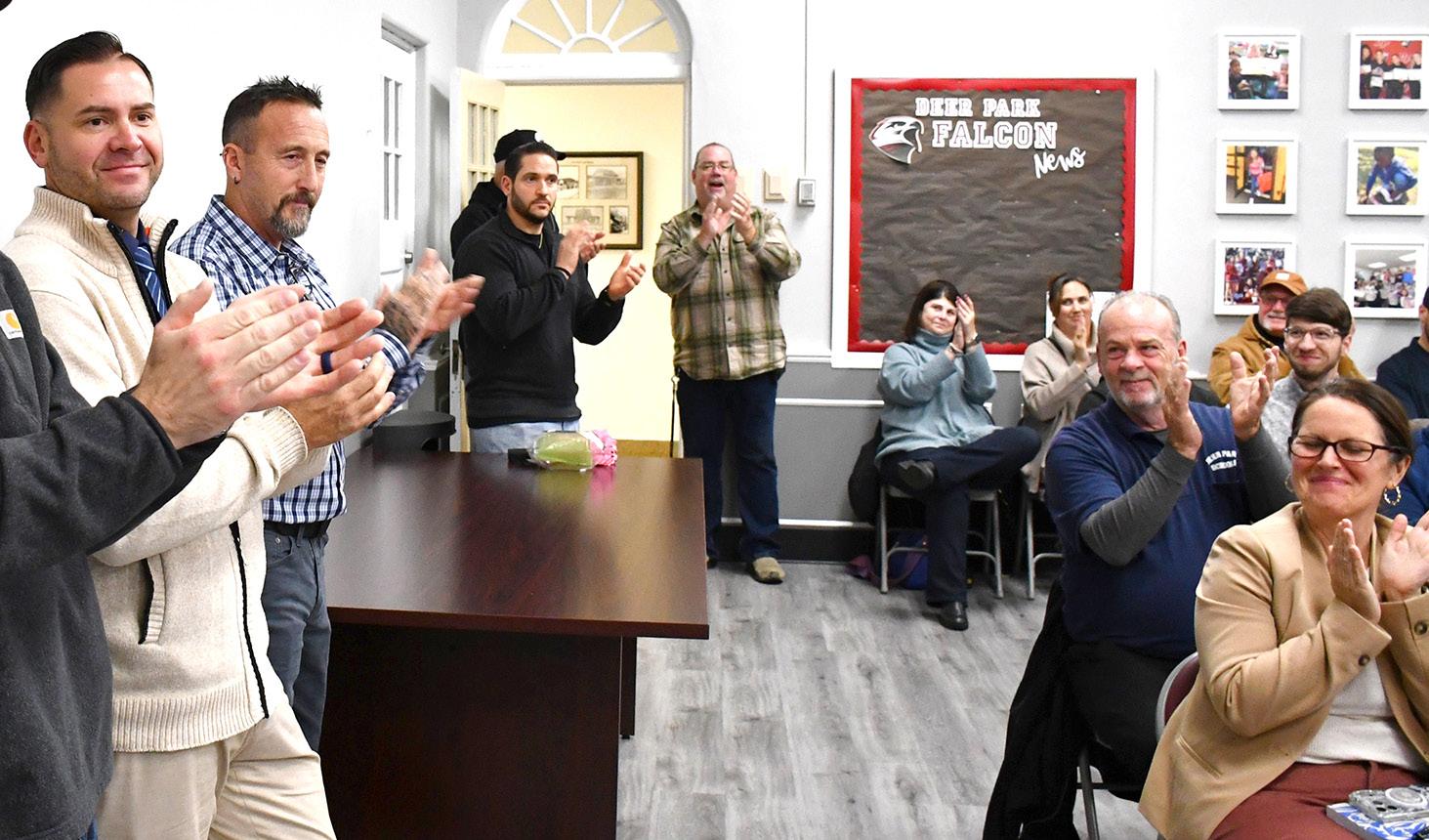 Several new instructional hires were then welcomed, including Deer Park High School science teacher John Pankey and teaching assistants Caitlin Buchholz, Rachel Rhodes, Megan RooneyMerkle, Christina Vitarella and Angela Walz, and two faculty members – John F. Kennedy Intermediate School special education