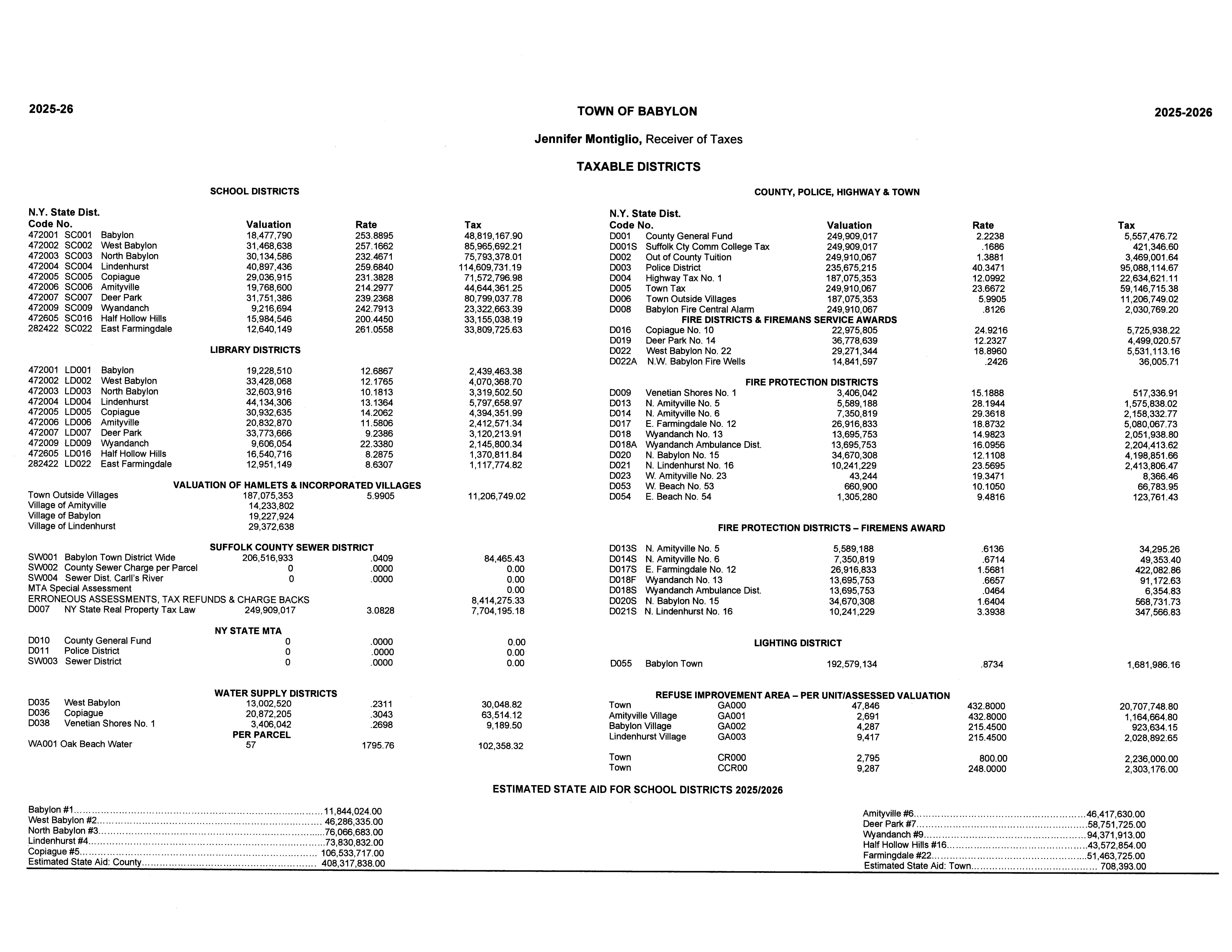 2025/2026 TAX RATE ON $100 valuation - TOWN OF BABYLON