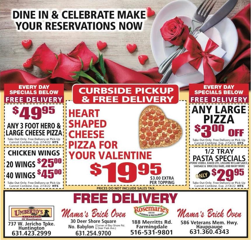 17 SOUTH FARMINGDALESOUTH BAY’S NEIGHBOR NEWSPAPERS WEDNESDAY, MARCH 15, 2023 • WWW.LONGISLANDMEDIAGROUP.COM 737 W. Jericho Tpke. Huntington 631-423-2999 30 Deer Shore Square North Babylon 631-254-9700 586 Veterans Memorial Hwy. Hauppauge 631-360-4343 188 Merritts Rd. Farmingdale 516-531-9801 Say You Saw The Hometown Shopper July 15, 2021 -FARMINGDALE/N. MASSAPEQUA COMBO COMBO1/2 TR AY ANTIPASTO SALAD FR EE DE LI VE RY FR EE DE LI VE RY ANYL ARGE PIZZ A ANYL ARGE PIZZ A DINING ROOM NOWOPEN FORTABLE SERVICE PART YROOMS AVAILABLE CALL FORINFORMATION •ANY 3FOOT HERO •24GARLICKNOTS •DOZEN CHICKEN WINGS •LARGE CHEESE PIE $1995 $3895 $3600 ONLY $1695 $2495 With coupon. Cannot combine. Exp. 7/22/21. With coupon. Cannot combine. Exp. 7/22/21. With coupon.Cannotcombine.Exp.7/22/21 With coupon.Cannotcombine. Exp. 7/22/21. CHICKEN WINGS 20 WINGS 40 WINGS $300 OFF $300 OFF 409748CN031523 ORDER NOW ORDER NOW Take Out Only. Free Delivery or Pick-Up Cannot Combine. Limit 10 Pizzas. Exp. 3/1/23 NN Take Out Only. Free Delivery or Pick-Up Cannot Combine. Limit 10 Pizzas. Exp. 3/1/23 NN Exp. 3/1/23 NN ORDER NOW 1/2 TRAY PASTA SPECIALS Take Out Only. Free Delivery or Pick-Up Cannot Combine. Limit 10 Pizzas. Exp. 3/1/23 NN Take Out Only. Free Delivery or Pick-Up Cannot Combine. Limit 10 Pizzas. Exp. 3/1/23 NN $18 95 GRANDMA PIZZA $ 17 95 BAKED ZITI OR CHEESE RAVIOLI BRICK OVEN PIZZA $ 1295 Cannot combine with any other offers. Expires 4/7/23 FM MONDAY NIGHT SPECIALS SICILIAN PIE PASTA NIGHT LARGE CREAMY SPINACH ALFREDO PIZZA $10 95 12 pastas to choose from $4 off $ 300OFF CHICKEN WINGS $2500 $4500 20 WINGS 40 WINGS Take Out Only. Free Delivery or Pick-Up Cannot Combine. Limit 10 Pizzas. Exp. 4/7/23 FM ANY 3 FOOT HERO & LARGE CHEESE PIZZA Take Out Only. Free Delivery or Pick-Up Cannot Combine. Limit 10 Pizzas. Exp. 4/7/23 FM $ 4995 1/2 TRAY PASTA SPECIALS Take Out Only. Free Delivery or Pick-Up Cannot Combine. Limit 10 Pizzas. Exp. 4/7/23 FM $ 2995 PENNE VODKA, BAKED ZITI, LINGUINI W/CLAM SAUCE, SAUSAGE & BROCCOLI ONLY ANY LARGE PIZZA $ 300OFF Take Out Only. Free Delivery or Pick-Up Cannot Combine. Limit 10 Pizzas. Exp. 4/7/23 FM Cannot combine with any other offers. Expires 4/7/23 FM Cannot combine with any other offers. Expires 4/7/23 FM Cannot combine with any other offers. Expires 4/7/23 FM Cannot combine with any other offers. Expires 4/7/23 FM