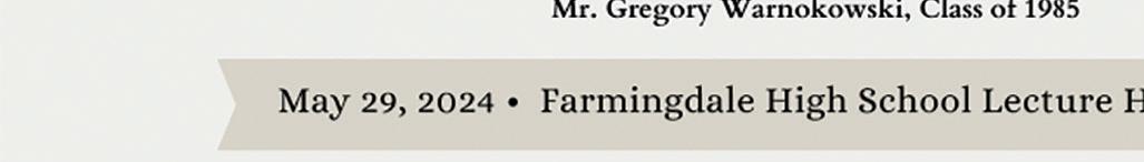 studies and experience as a band director. He is a skilled musician and pianist who performs with popular bands on Long Island. Appointed in 2020, he showed exceptional leadership during COVID-19, maintaining a highquality arts program. He is a former president of the Nassau Music Educators Association and has served in various organizational roles. In September 2023, the Farmingdale Community faced an insurmountable tragedy. During this challenging time, Mr. Warnokowski focused on supporting our community and ensuring that our music and arts programs continue to thrive.