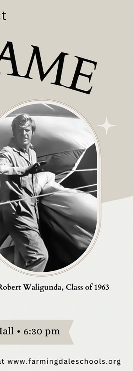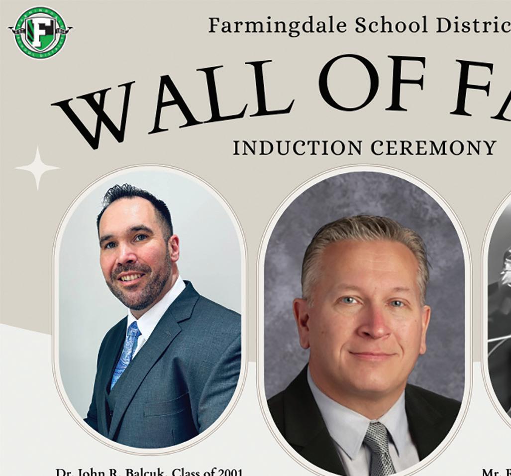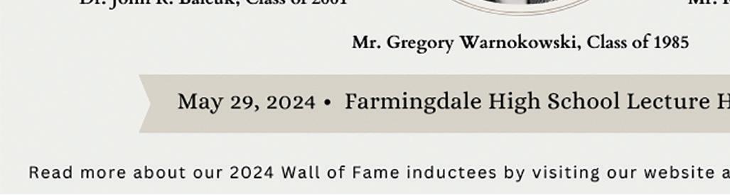 Read more about our 2024 Wall of Fame inductees by visiting our website at www. farmingdaleschools. org and join us on May 29 at 6:30 p.m. for the Wall of Fame Induction Ceremony at Farmingdale High School School.