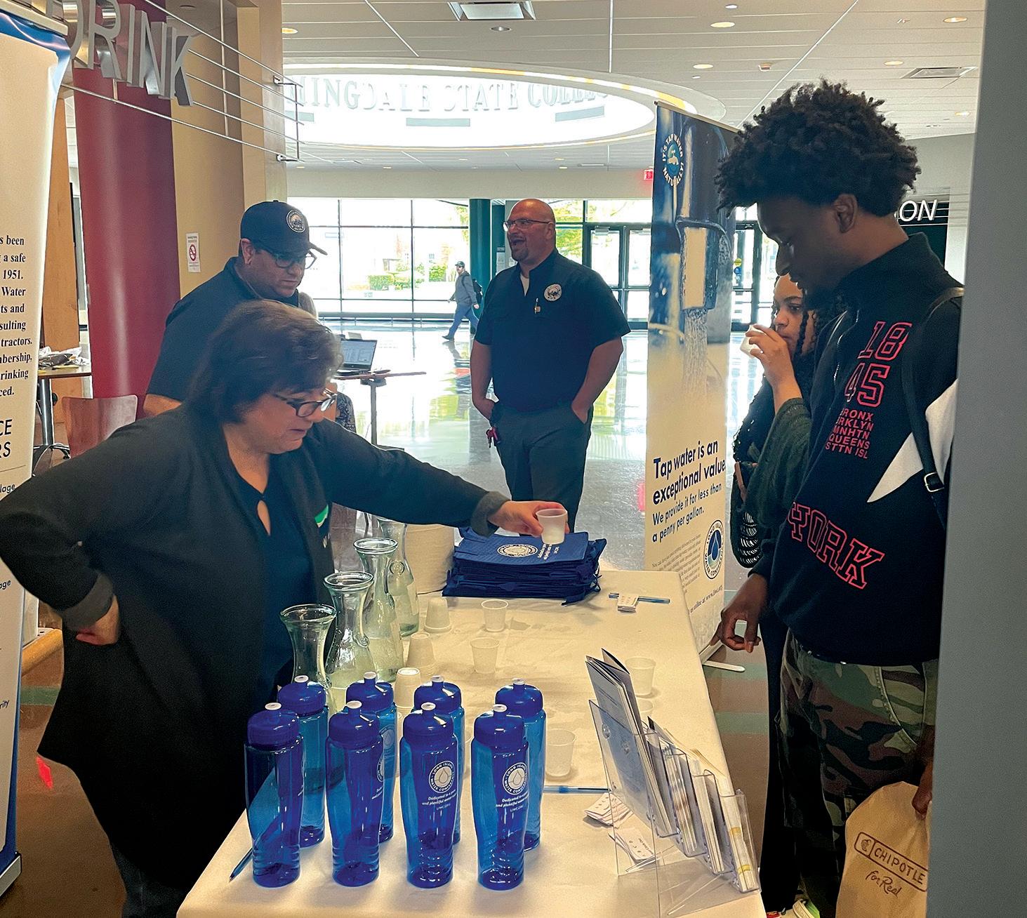 36TH ANNUAL DRINKING WATER TASTING CONTEST - In honor of National Drinking Water Week, the Long Island Water Conference (LIWC) hosted its 36th annual drinking water tasting contest at Farmingdale State College from Tuesday, May 7 to Wednesday, May 8. 14 water providers from across Long Island vied for the title of best drinking water in Nassau County and Suffolk County, respectively. Pictured: Long Island Water Conference officials were on hand to distribute samples from different water providers so participants could select their favorites.