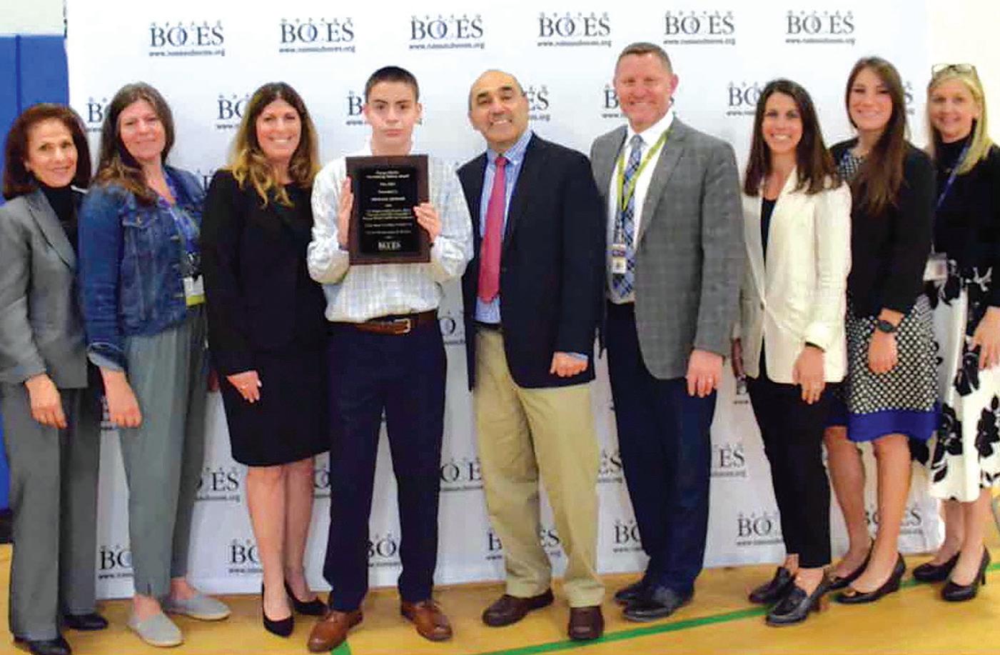 Michael Romani of the Farmingdale UFSD, who attends Nassau BOCES Robert Williams School, earned the prestigious George Farber Outstanding Student Award this year. The award celebrates a variety of Michael’s remarkable attributes including passion, perseverance, enthusiasm, outstanding character, scholarship and a willingness to help others. Board members, administrators, staff and family were on hand to celebrate at a special ceremony earlier this spring.