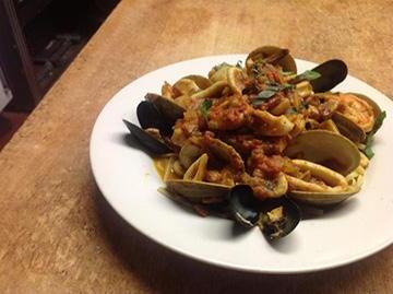 In a Spicy Marinara Sauce with Crispy Shitake Mushrooms