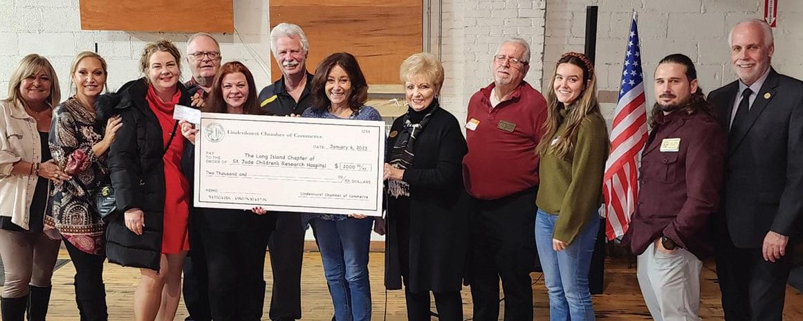 The Lindenhurst Chamber of Commerce donated $1,000 to St. Jude’s Children’s Research Hospital. Donations were collected at the Chamber Holiday Networking Party, and the Chamber matched the collection amount. Pictured: LCOC Board members Rea Leunes, John Reynolds, Peter Buccino, Meg Cohen, Craig Chase, Emily Fitzgibbon, Andrew Belding, LCOC Vice-President Marie Seaquist, LCOC President JoAnn Boettcher, and Legislator Kevin McCaffrey.
