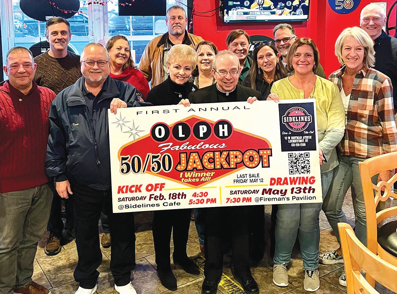 AT SIDELINES CAFE - Our Lady of Perpetual Help launches a “Mega 50/50” Fundraiser at Sidelines Cafe in Lindenhurst. The fundraiser is to support all church expenses to continue the good work in the community. Monsignor Joseph DeGrocco along with Meg Danaher, Jill Delano, and the entire Finance Committee will be driving this fundraiser. Thanks to Mayor Mike, Chamber President Joanne Boettcher, Sidelines’ Owner Luanne Bridges, and her team for support during the launch. Contact OLPH to purchase your ticket for a drawing in May 2023!