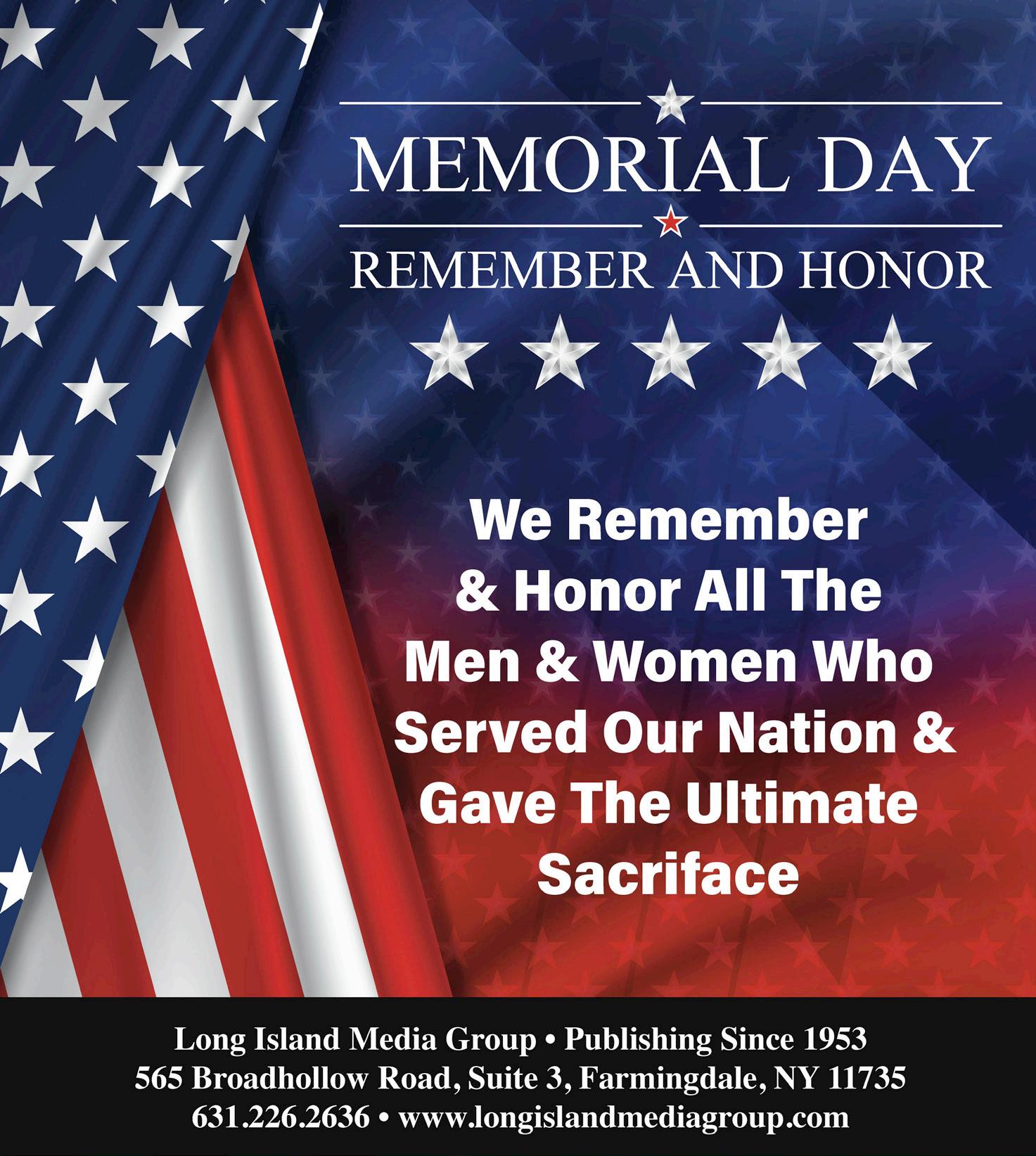IN MERRINECK II SHOPPING CENTER. FOOT OF GREAT NECK ROAD 860 MERRICK RD. / MONTAUK HWY. COPIAGUE CORNER OF SOUTH FOURTH STREET 631-841-5531 AMITY-BABYLON WAREHOUSE WINE & LIQUOR 631-226-3965 EXOTIC WAREHOUSE WINE & LIQUOR 111 W. HOFFMAN AVE. LINDENHURST HAPPY MEMORIAL DAY Army • USMC Navy • Air Force Coast Guard THANK YOU TO ALL WHO BRAVELY SERVED 416161N052423 416166N052423 We Look Forward to Seeing Old Friends and Making New Ones! LET US CATER YOUR GRADUATION OR YOUR NEXT SPECIAL OCCASION AT YOUR HOME OR IN OUR PRIVATE DINING ROOM! 255 S. Wellwood Ave. • Lindenhurst 631-225-2020 (Just North of West Gates Ave.) Rear Entrance With Private Parking Free Delivery Villa_Pizzeria With Respect, Honor & Gratitude Thank You To All Our Veterans 416164N052423