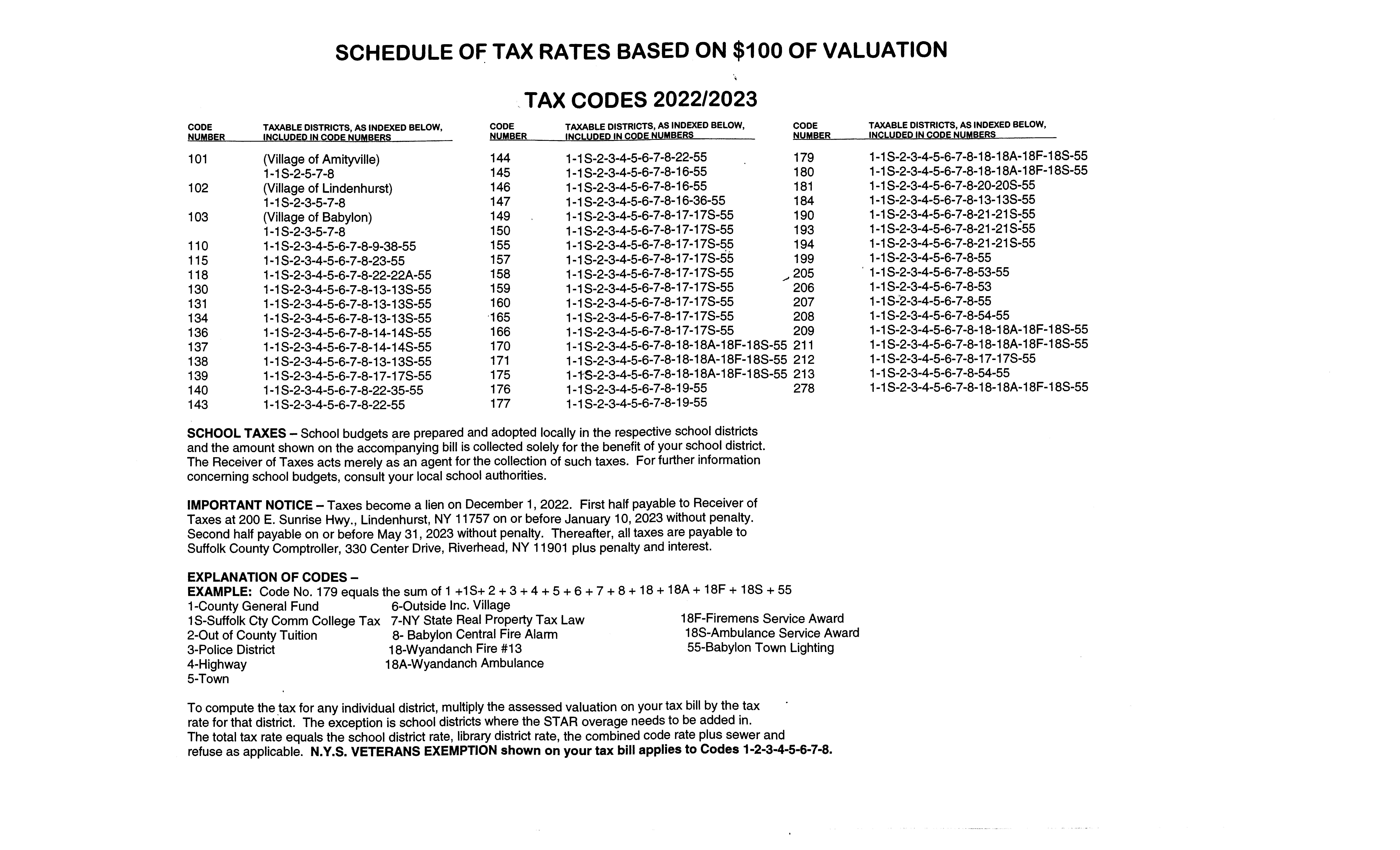 TOWN OF BABYLON 2022-2023 Jennifer Montigio, Receiver of Taxes TAXABLE DISTRICTS