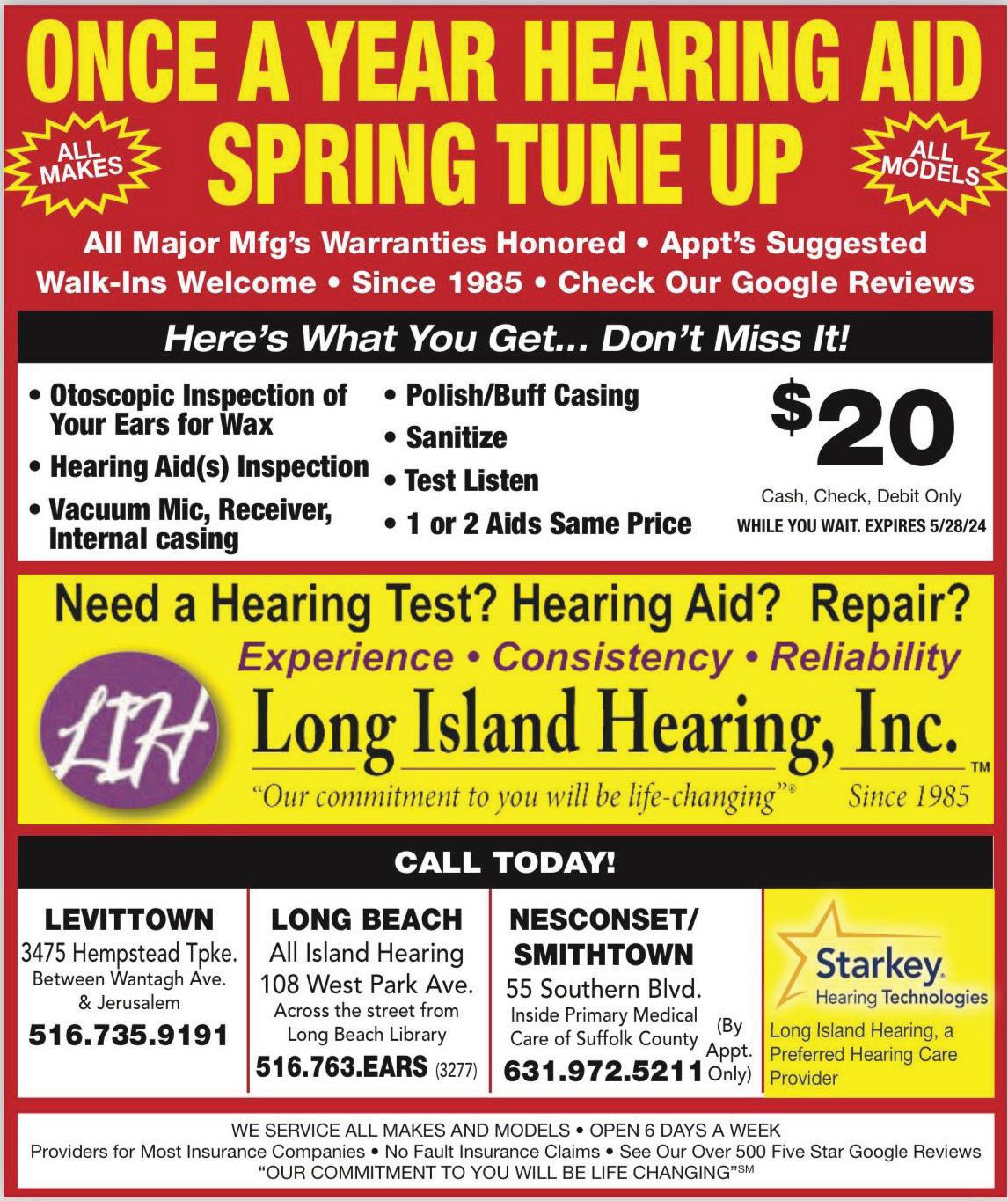 3 NORTH BABYLONSOUTH BAY’S NEIGHBOR NEWSPAPERS WEDNESDAY, MAY 8, 2024 • WWW.LONGISLANDMEDIAGROUP.COM We are excited to announce floor-to-ceiling room renovations to our Mt. Laurel Suites, as well as our Springbrook rooms! First renovations completed as early as this spring! WOODLOCH.COM l 570.685.8000 394865N050824 ENTER TO WIN A 4-PACK OF PASSES TO TO ENTER, VISIT www.longislandmediagroup.com/ contest and submit an entry form. TWO WINNERS WILL BE CHOSEN! All entries must be submitted by May 31. Winners will be notified on Monday, June 3rd. One entry per person. Long Island Media Group • 631.226.2636 • info@longislandmediagroup.com 29 W. SUNRISE HWY. • LINDENHURST (RIGHT NEXT TO IHOP) SUFFOLK COUNTY: 631-226-2277 NASSAU COUNTY: 516-535-9700 SELL YOUR CAR NOW! GET OVER TRADE IN VALUE! • Top Dollar Paid • Highest Payout • Any Condition • Collision Damage OK • Mechanical Problems OK • Car Loans Paid Off • Leased Car Buyouts Long Island’s Top Junk Car Removal Service 2019 & 2020 CASHFORCARSLONGISLAND.NET 419893N050824