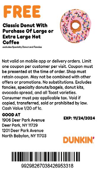 • Deer Park Library, 44 Lake Avenue, Deer Park: Friday, November 1, 9 –11 am