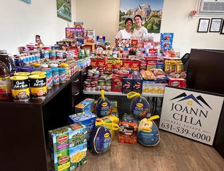 Thank you to everyone who generously donated to JoAnn Cilla Real Estate's Thanksgiving food drive, from October 1st to November 1st. It was a huge success! Your generosity will make a difference this Thanksgiving. Turkeys, boxes/ bags of food, and cases of water were delivered to St. Vincent de Paul at Our Lady of Perpetual Help in Lindenhurst. Pictured right to left are JoAnn Cilla and Kamryn Moran.