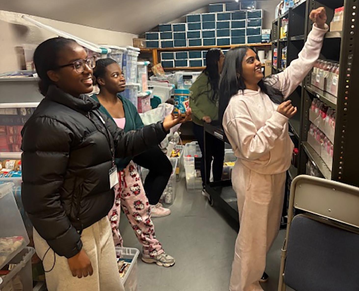 ensuring every detail is in order for families in need. Their involvement aligns directly with the course’s goal of studying leadership in politics, history, education and community settings. As part of their projectbased assessment, students