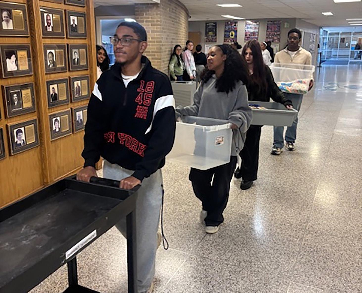 Students in Ms. Gurtner’s Leadership in History and Action class at Walter G. O’Connell Copiague High School have been hard at work preparing for the district’s annual Thanksgiving food distribution. This