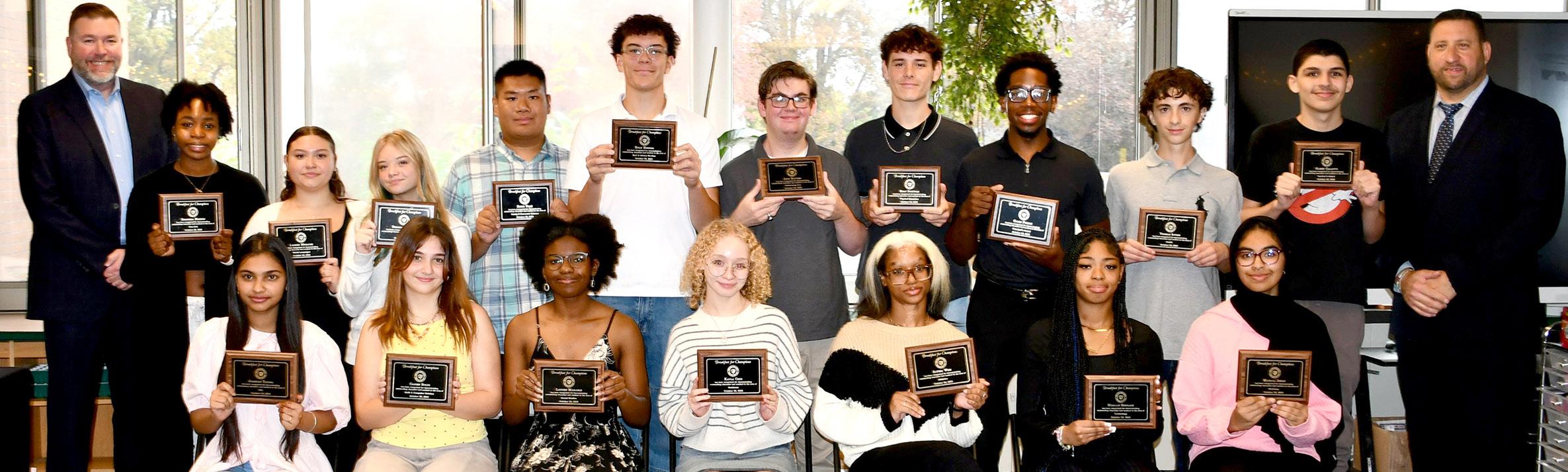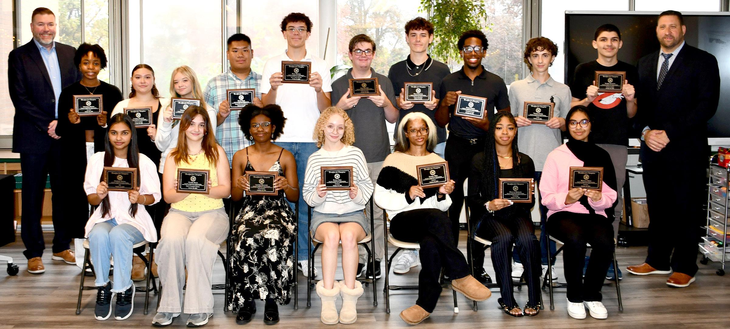 computer science (Caiden Boltz), performing arts (Jack Hayden), physical education (Sean Donovan), science (Breana Troiano), social studies (Lauren Marable), technology (Meagan Sinclair) and world languages (Liliana Morales), as well as the Principal’s Award (Caleb Pierre) and Teacher’s Award (Glenn Calautti).