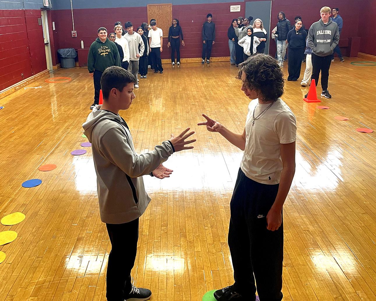 While Deer Park High School High School administered the PSAT on Oct. 30, the school’s physical education staff organized a series of cooperative team-building activities for freshman students. Three 45-minute sessions were held throughout the day, with approximately 100 students participating in each, promoting collaboration, communication and school spirit. Photo courtesy of Deer Park School District