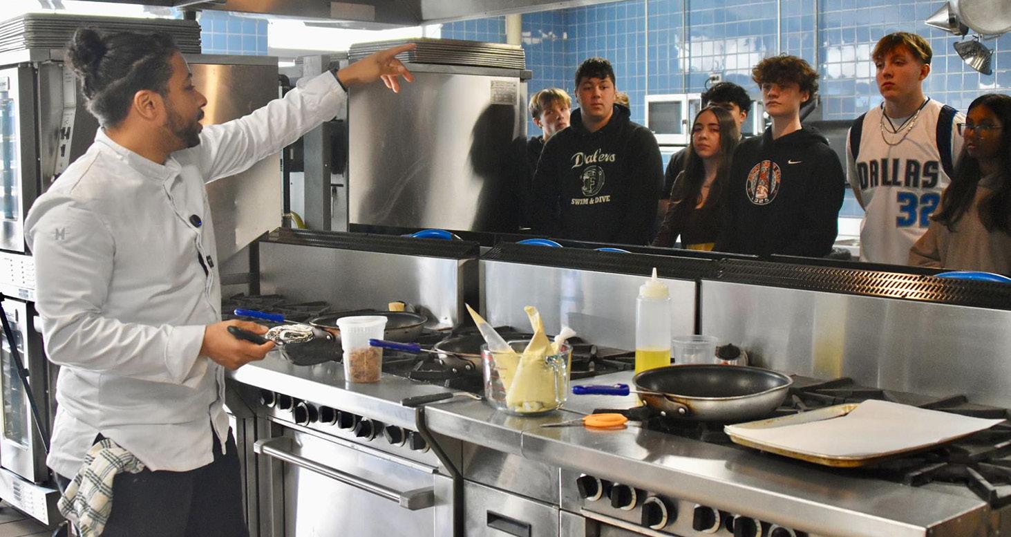 What a full-circle moment! Chef Sakari Smithwick is back in the very classroom where his culinary journey began, now inspiring the next generation. Photo courtesy of the Farmingdale School District