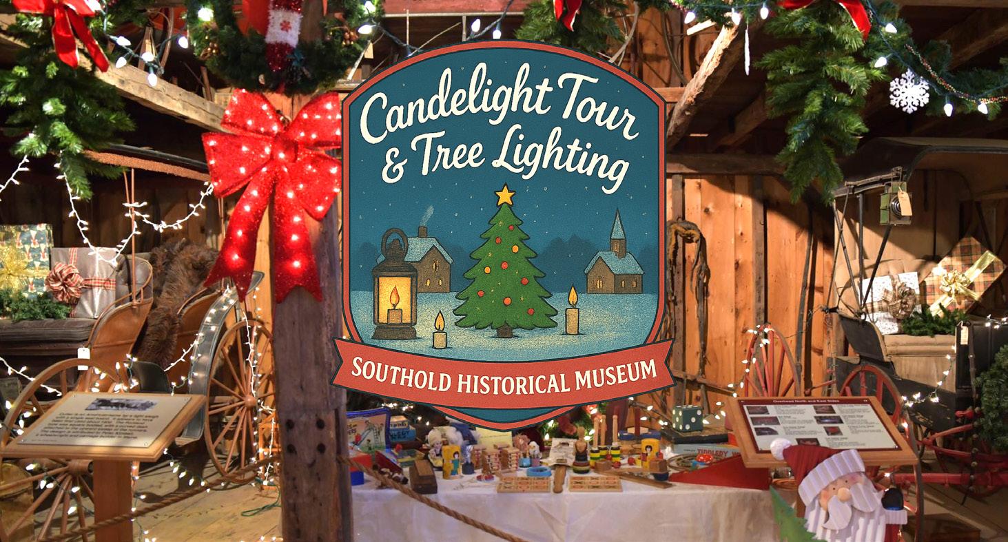 Step into the magic of the season at Southold Historical Museum’s Candlelight Tour & Tree Lighting, taking place Friday, November 28, from 3:00–6:00 PM at the Maple Lane Campus of historic buildings.